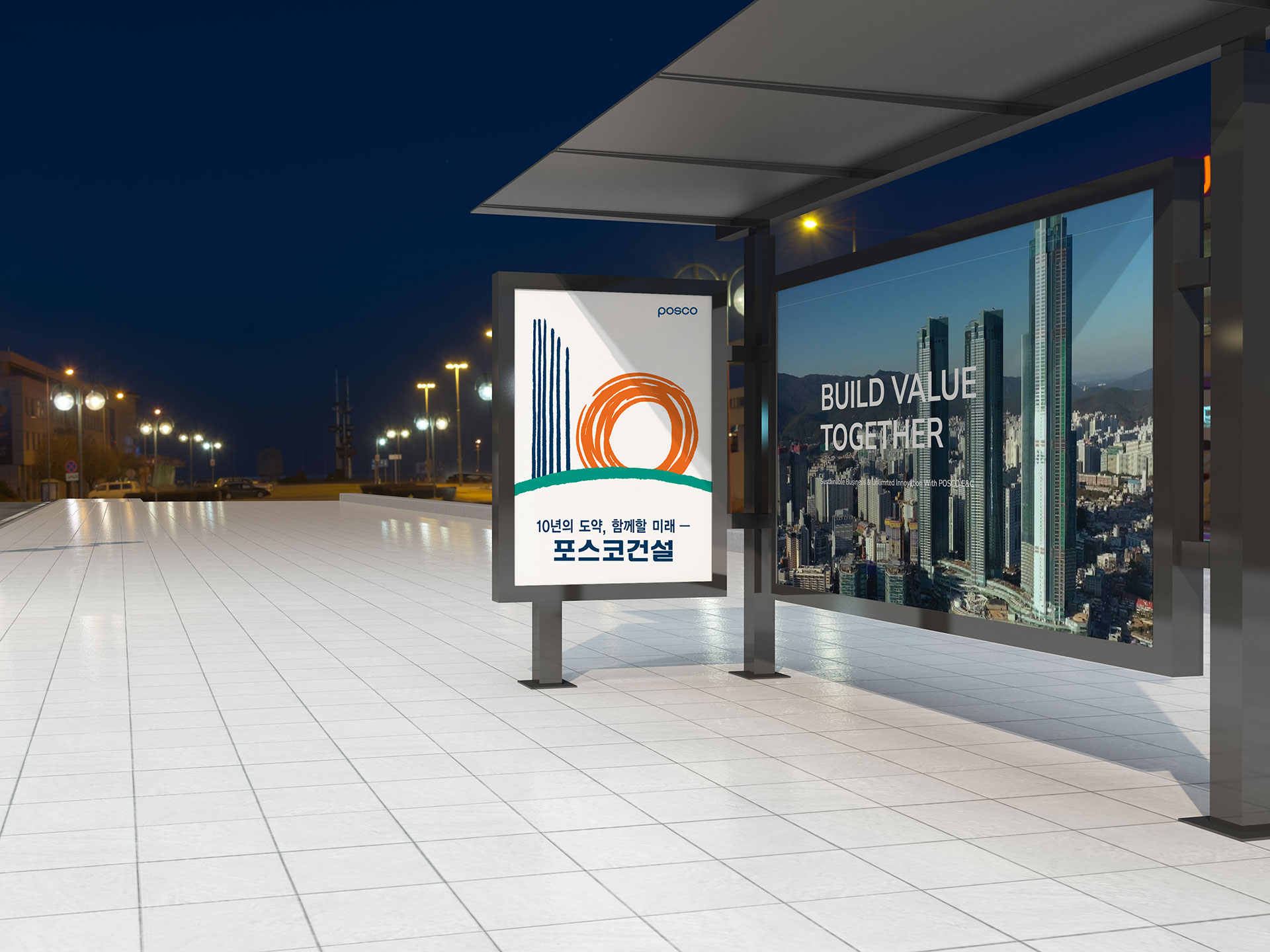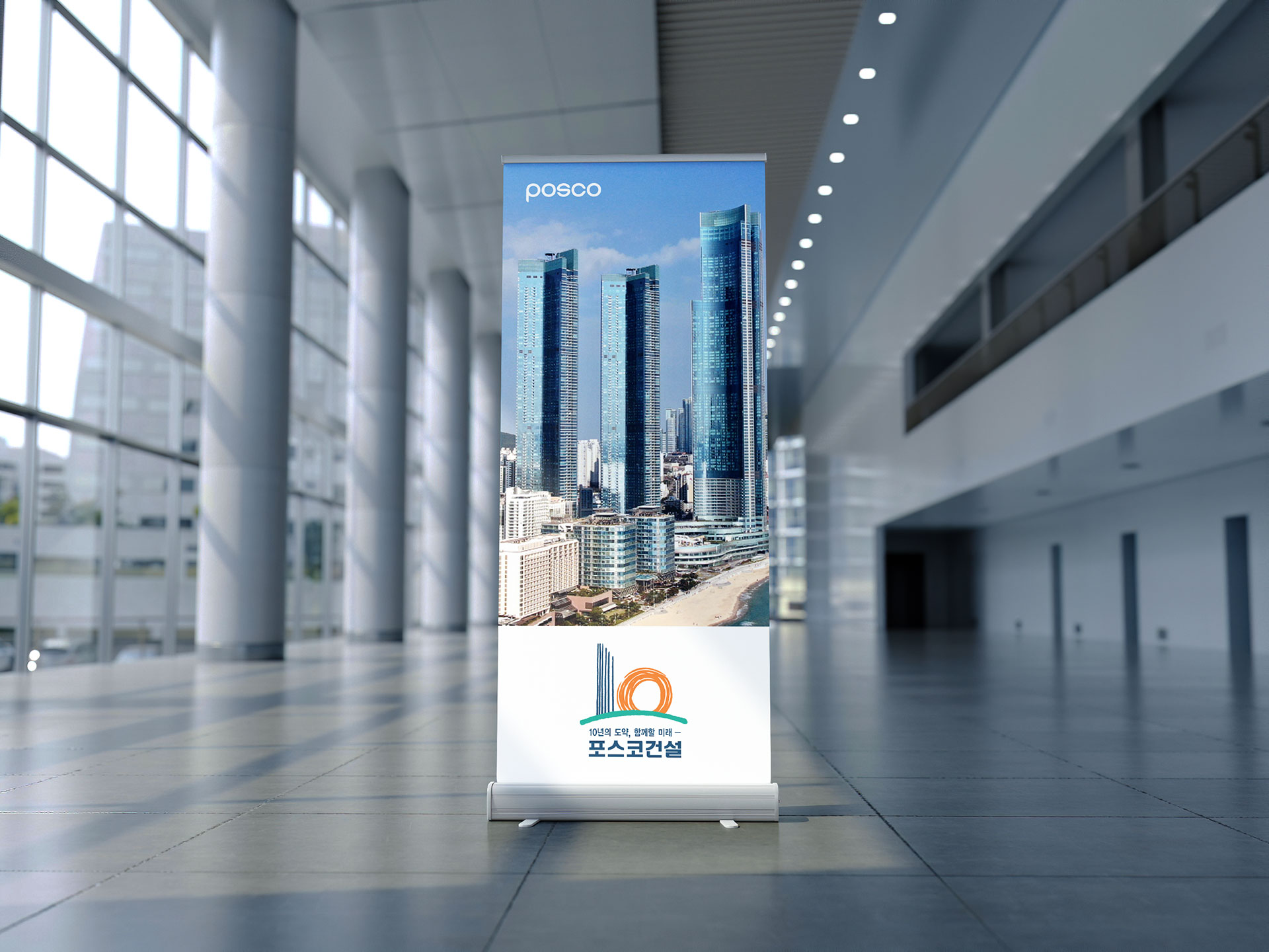 포스코건설 10주년 엠블럼 10년의 도약, 함께할 미래 포스코건설은 설립 10주년을 맞아 SMART Global E&C Company라는 새로운 비전을 선포하며, 기업의 정체성과 미래 전략을 재정립하고자 하였다. 기존의 관행과 인식, 생산 방식에서 탈피하여 전문성과 도덕성, 적극성을 기반으로 한 혁신 기업으로 도약하는 전환점이 필요하였다. 지속적인 혁신을 통해 최고의 성과를 창출하고, 고객이 먼저 찾는 기업으로 성장하는 것을 핵심 목표로 설정하였으며, 이는 단순한 슬로건을 넘어 기업 문화 전반을 변화시키는 방향성이었다. 2015년 수주 7조 원과 경제적 부가가치 4천억 원 달성, 세계 30위권 건설사로의 성장을 목표로 삼으며 글로벌 경쟁력을 강화하고자 하였다. 이를 위해 ‘최적의 사업구조 확립’과 ‘글로벌 수준의 핵심 역량 확보’를 전략 방향으로 설정하고, 기업 가치 극대화를 추진하였다. 이러한 변화와 성장의 의지를 상징적으로 담아내기 위해, 10년의 성과를 기념함과 동시에 새로운 도약을 선언하는 10주년 엠블럼 개발이 진행되었다. 10년의 도전과 성과를 기반으로, 앞으로의 미래를 함께 만들어가겠다는 의지를 시각적으로 구현하는 것이 이번 엠블럼 개발의 핵심 목적이었다. | ||||