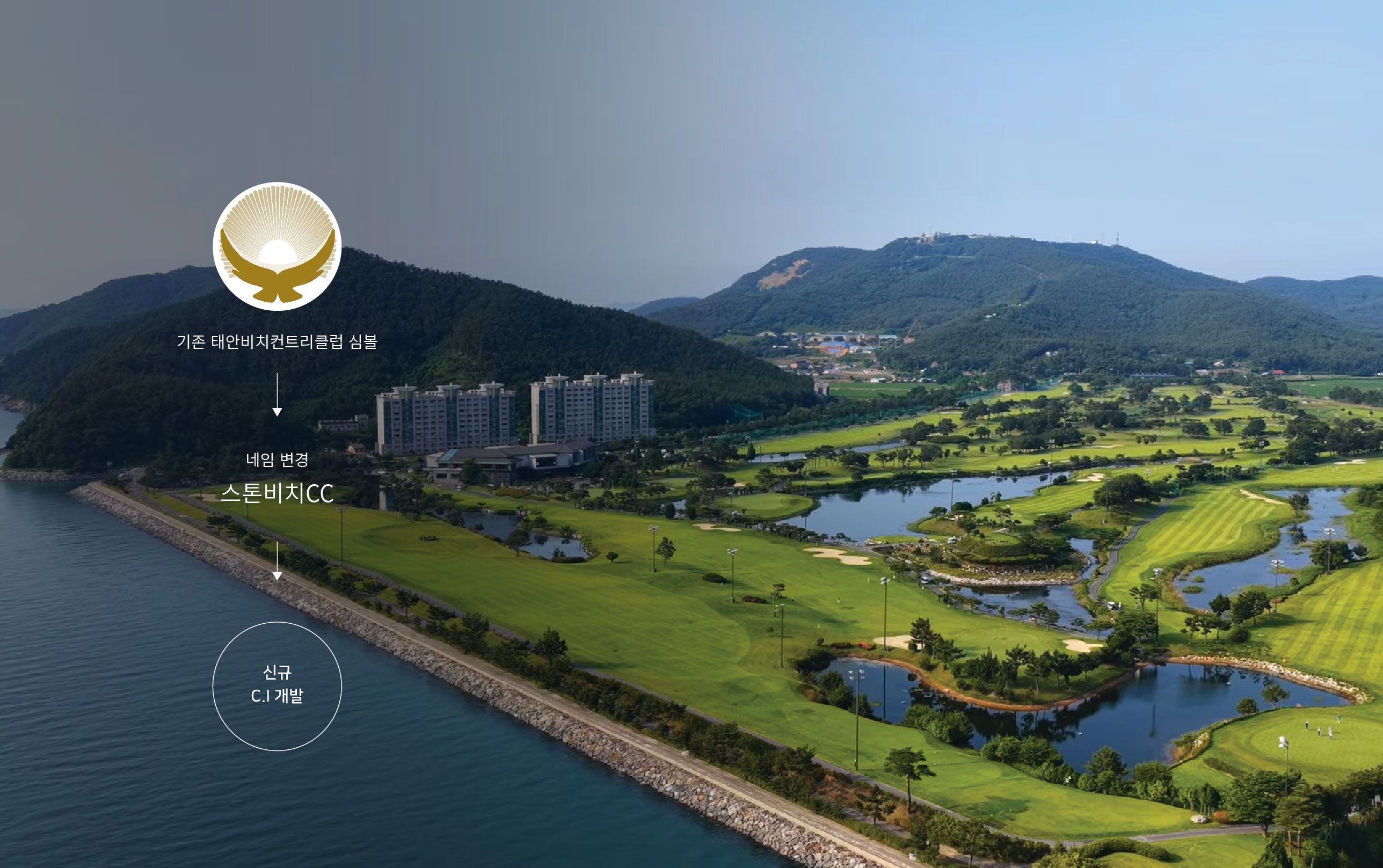 스톤비치 BI 태안비치컨트리클럽 브랜드 재활성화 스톤비치CC는 서해의 청정 해상공원인 태안 해안국립공원에 접한 골프 컨트리클럽으로, 안면송 숲과 바다 경관이 어우러진 자연 친화적 입지를 갖추고 있다. 다양한 해수욕장과 안성항, 국립 태안 해양 유물전시관 등 주변 관광 인프라와의 연계성이 뛰어나 단순한 골프장을 넘어 체류형 관광 목적지로서의 가능성을 지니고 있다. 그러나 기존 ‘태안비치컨트리클럽’이라는 명칭은 지역 중심의 인식에 머물러 있었으며, 고급 리조트형 골프장으로서의 브랜드 확장성과 차별화된 이미지를 충분히 전달하지 못하는 한계가 있었다. 이에 따라 보다 세련되고 기억하기 쉬운 네이밍을 통해 브랜드 경쟁력을 강화하고자 하였으며, 새로운 브랜드 아이덴티티 구축의 필요성이 제기되었다. 기존 명칭에서 탈피한 ‘스톤비치CC’로의 네임 변경은 단순한 이름 교체가 아닌, 브랜드 포지셔닝을 재정립하는 전략적 리뉴얼의 출발점이다. 자연과 어우러진 코스의 견고함(Stone)과 서해의 청량한 해안 이미지(Beach)를 결합하여 프리미엄 해안형 골프 클럽의 정체성을 명확히 하고자 하였다. 또한 신규 C.I 개발을 통해 고급스러움과 자연 친화적 이미지를 동시에 강화하고, 리조트형 골프 클럽으로서의 차별화된 브랜드 가치를 시각적으로 구현하는 것을 목표로 브랜드 리뉴얼이 진행되었다. 이는 지역을 대표하는 명문 골프 클럽으로 도약하기 위한 기반을 마련하는 과정이라 할 수 있다. | ||||