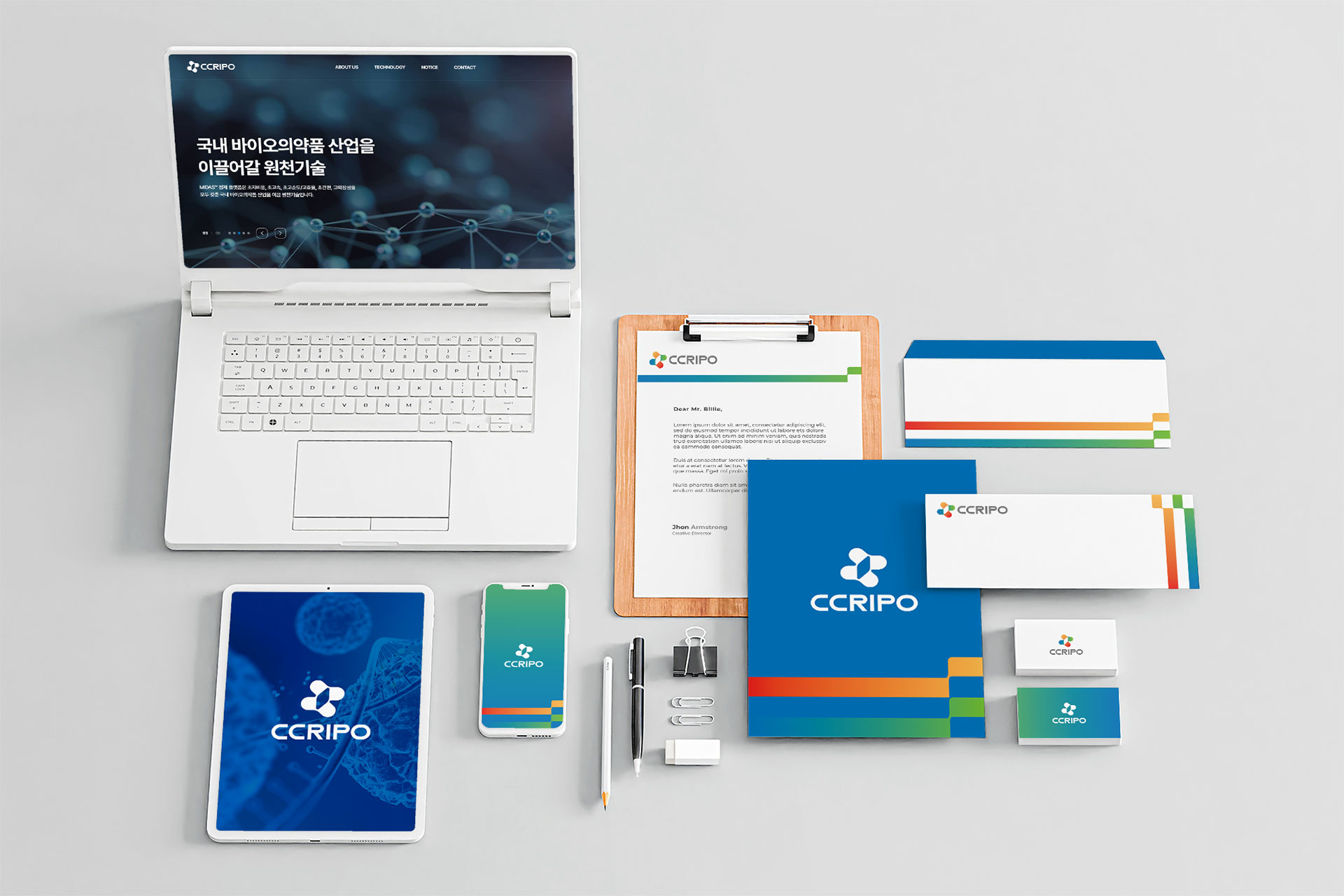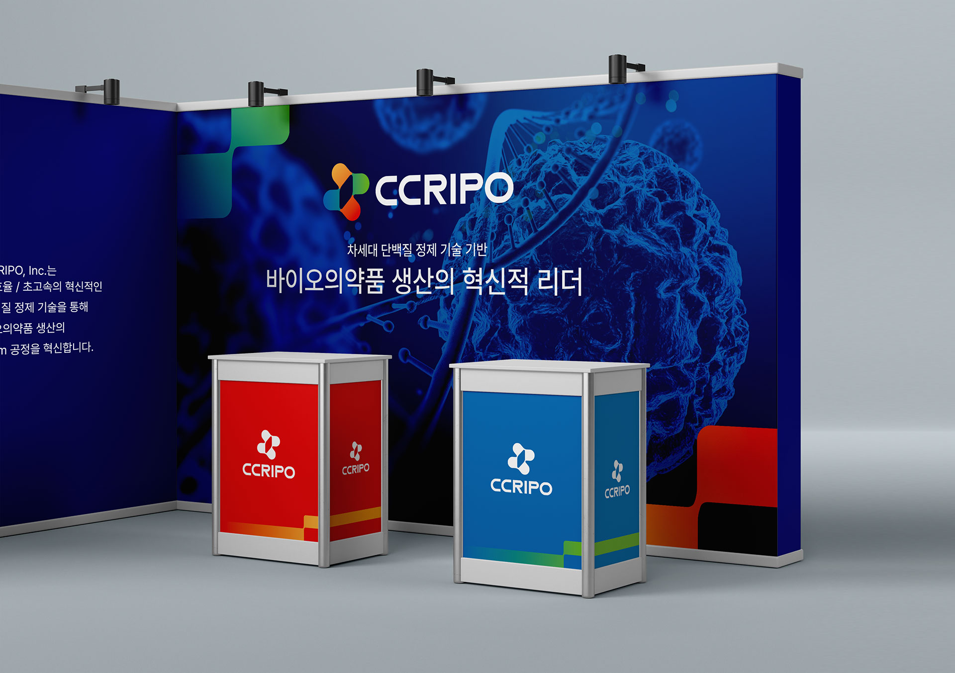 크리포 CI 단백질 배양, 정제의 패러다임을 선도하는 기업 크리포는 저비용·초고속·고효율의 차세대 단백질 정제 기술을 기반으로 바이오의약품 생산 공정의 혁신을 목표로 출발한 기술 중심 기업이다. 바이오의약품 시장이 빠르게 성장하는 가운데, 생산 비용 절감과 공정 단축, 품질 안정성 확보는 글로벌 경쟁력의 핵심 과제로 부각되고 있다. 이에 크리포는 기존 resin/column 기반 정제 방식의 한계를 극복하고자, 차별화된 기업형 유도방식의 resin/column-free 차세대 단백질 정제 플랫폼을 개발하였다. 이는 기존 공정 대비 획기적인 비용 절감과 속도 향상을 가능하게 하며, 생산성과 공급 안정성을 동시에 강화할 수 있는 기반 기술이다. 특히 기존 공정 대비 최소 1/200 비용, 1/40 소요 시간이라는 혁신적 수치를 통해 초격차 가격·스피드 경쟁력을 확보하였으며, 공정 효율과 품질 경쟁력 측면에서도 우수한 성능을 구현하고자 한다. 이러한 기술적 강점을 바탕으로 바이오의약품 생산의 패러다임을 전환하고, 고객사에게 실질적인 부가가치를 제공하는 것을 브랜드의 핵심 방향으로 설정하였다. 크리포는 단순한 기술 보유 기업을 넘어, 바이오의약품의 보급과 대중화를 선도하는 플랫폼 기업으로 성장하고자 하는 비전을 담아 브랜드 개발을 진행하였다. 기술 혁신성과 미래 지향적 이미지를 동시에 전달할 수 있는 아이덴티티 구축이 중요한 과제로 설정되었다. | ||||