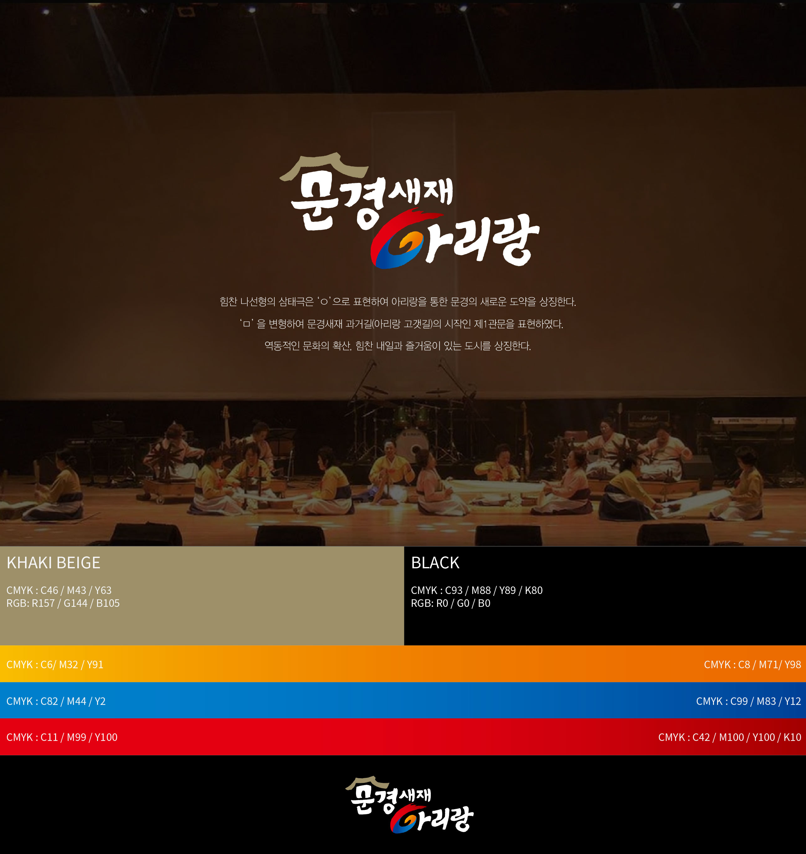 문경새재아리랑 BI 아리랑을 처음으로 세계에 알리다 문경은 대한민국을 대표하는 아리랑의 도시로 자리매김하기 위해 2015년 12월 ‘아리랑 도시’를 공식적으로 선포하였다. 이는 지역의 역사와 문화적 자산을 도시 경쟁력으로 발전시키기 위한 전략적 선언이었으며, 문경새재아리랑은 이러한 도시 브랜딩의 핵심 문화 콘텐츠로 주목받기 시작하였다. 최근 지방자치단체들은 지역 경쟁력을 확보하기 위해 도시 브랜드 구축에 많은 노력을 기울이고 있다. 지역의 산업, 문화, 관광 자원을 하나의 브랜드로 통합하여 도시의 이미지를 형성하고 지역경제 활성화로 연결하는 것이 중요한 과제가 되었다. 그러나 유사한 특산물과 문화 자산을 가진 도시들이 증가하면서 차별화된 도시 정체성을 확보하는 것이 더욱 중요해졌다. 문경 역시 밀양, 정선, 진도 등 아리랑을 대표하는 도시들과의 경쟁 속에서 문경만의 고유한 문화적 정체성과 상징성을 어떻게 구축할 것인가에 대한 고민이 필요했다. 이러한 과정에서 문경새재아리랑은 문경을 대표하는 문화 자산으로서 도시 브랜드의 중심 콘텐츠로 자리 잡게 되었다. 문경새재아리랑을 통해 문경의 문화적 가치를 널리 알리고, 아리랑의 도시로서의 위상을 강화하는 것이 중요한 브랜드 전략으로 제시되었다. 이를 위해 문경새재아리랑을 상징적으로 표현할 수 있는 시각적 아이덴티티의 구축이 필요하게 되었으며, 이는 문경의 문화와 정체성을 직관적으로 전달하는 핵심 요소로 기능하게 된다. 결과적으로 문경새재아리랑 브랜드 개발은 지역 문화의 상징성을 강화하고, 문경을 아리랑의 대표 도시로 인식시키기 위한 도시 브랜딩 전략의 중요한 출발점이 되었다. | ||||