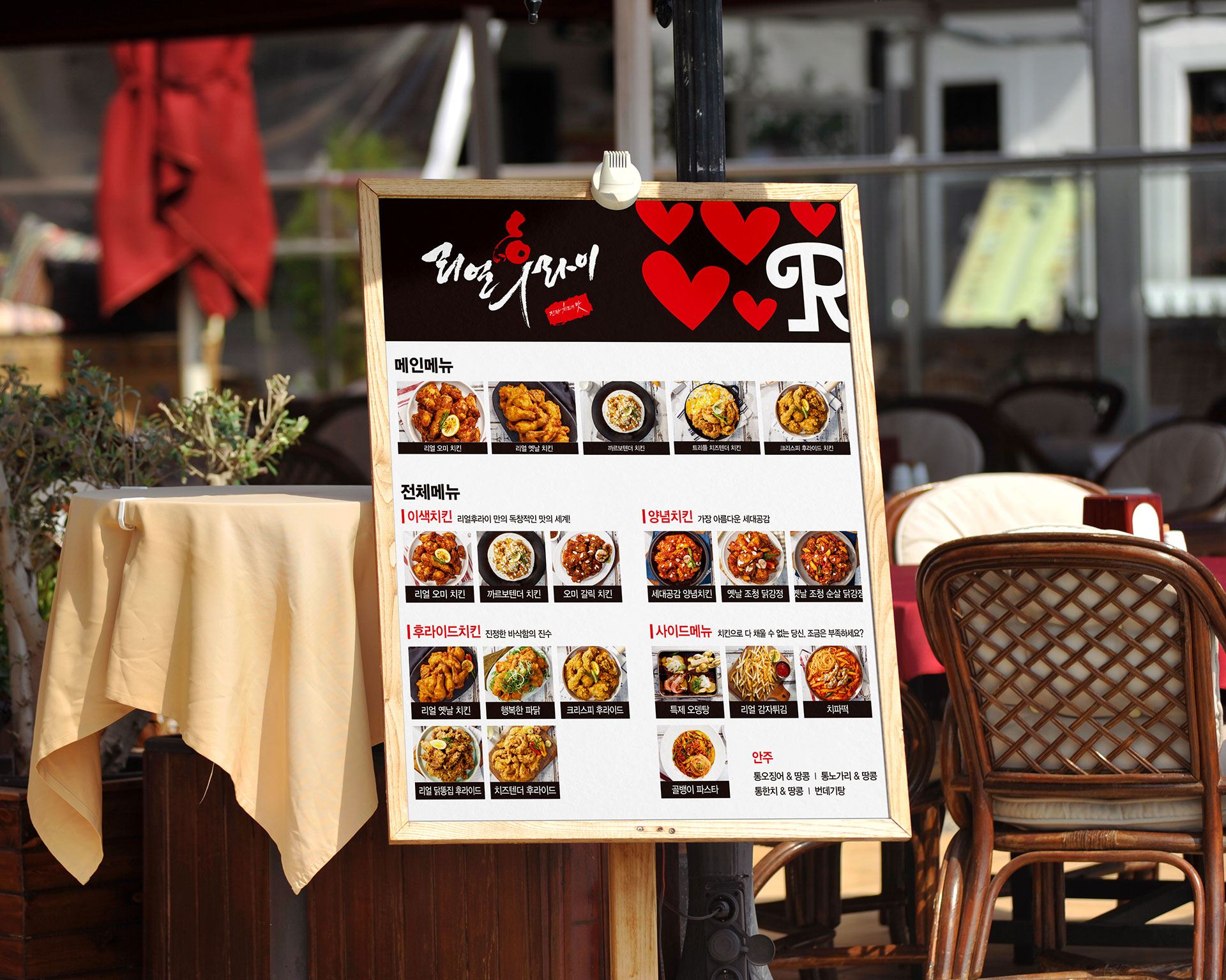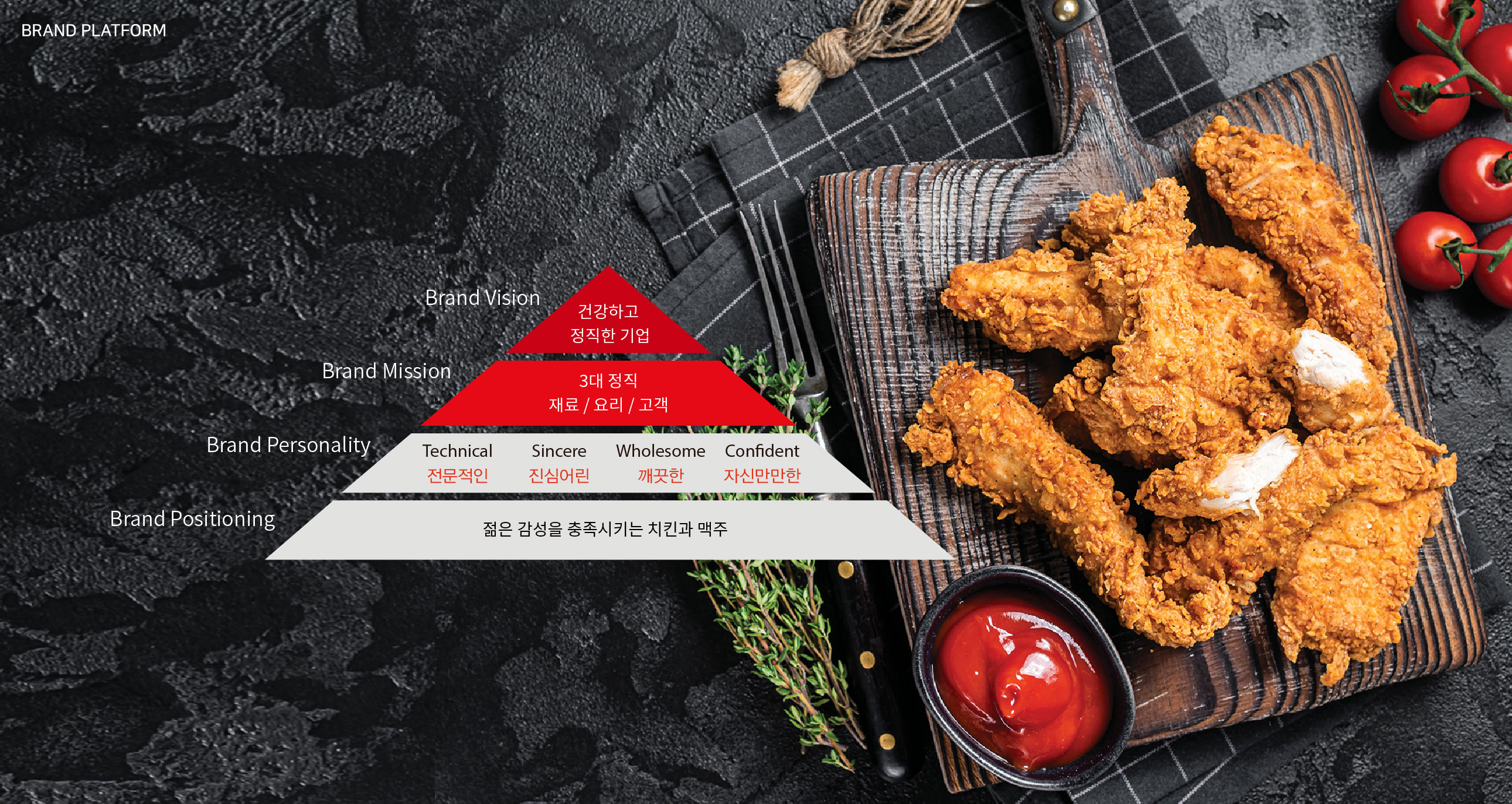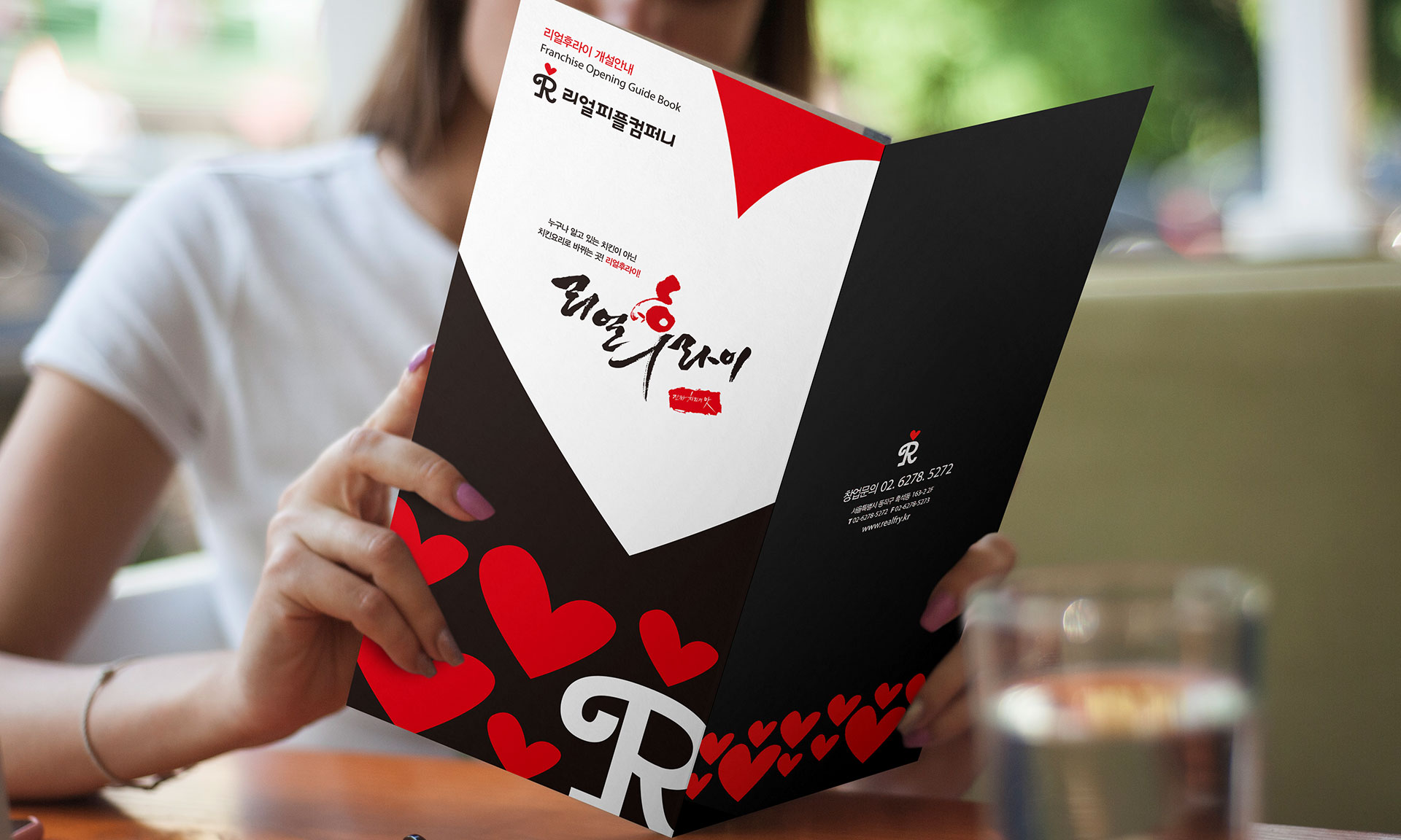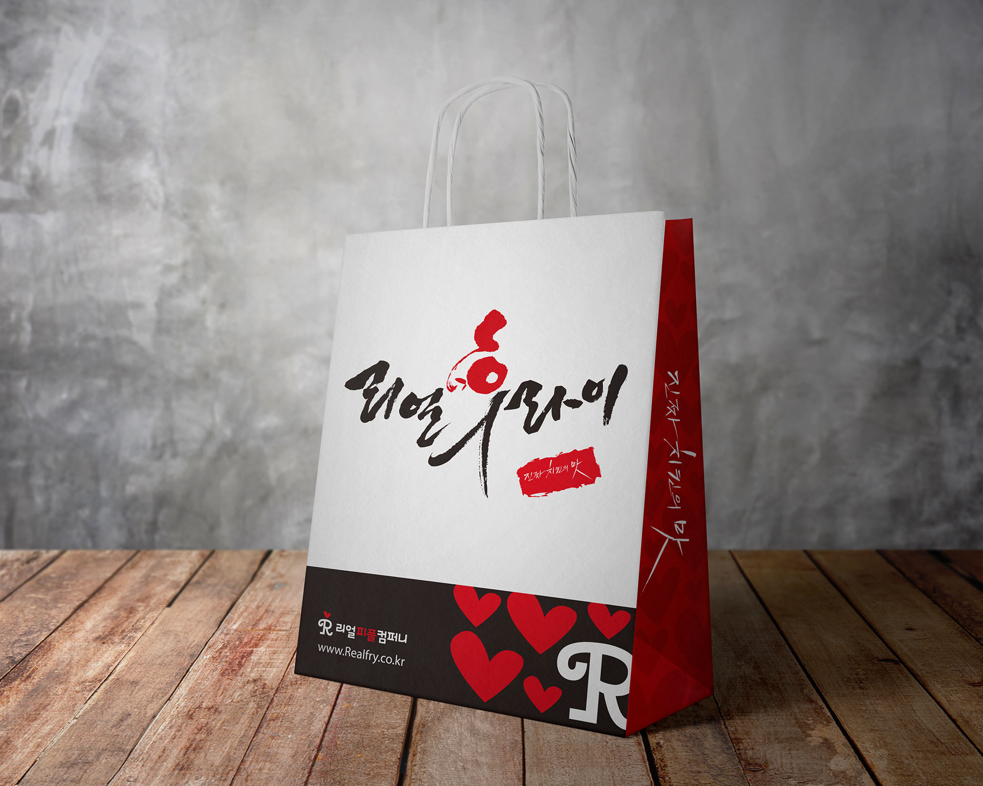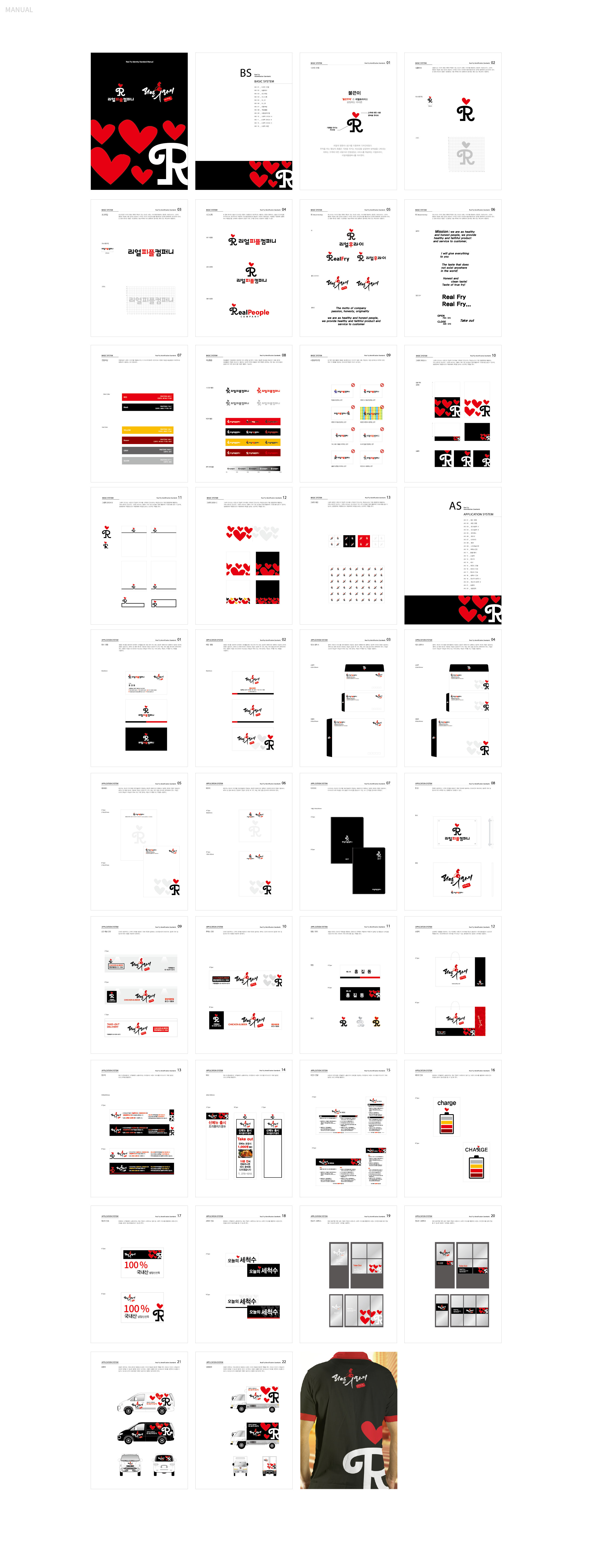 리얼후라이 BI 기본을 지키는 치킨의 자신감 리얼후라이는 서울 흑석동을 중심으로 사업을 확장해 온 치킨 프랜차이즈 브랜드이다. 기존 워드마크는 강렬한 컬러 조합과 자유로운 캘리그래피 터치로 시각적 임팩트를 형성했지만, 개성 중심의 표현 방식이 브랜드 자산으로 체계화되지는 못했다. 젊은 감성을 강조한 기존 캘리그래피는 초기 인지도 형성에는 효과적이었으나, 브랜드 확장과 프랜차이즈 운영 측면에서는 일관된 아이덴티티 구축에 한계가 있었다. 또한 단순한 워드마크 반복 사용으로는 매장, 패키지, 홍보물 등 다양한 접점에서 통합된 브랜드 이미지를 전달하기 어려운 상황이었다. 브랜드 확장과 가맹 사업의 안정적 성장을 위해서는 감각적 이미지를 넘어 체계적인 시각 아이덴티티 시스템 구축이 필요한 시점이었다. 이에 따라 로고 타입을 보완하는 그래픽 모티프 개발과 활용 매뉴얼 정립을 통해 브랜드 자산을 명확히 정리하고자 하였다. 이번 프로젝트는 단순한 리뉴얼을 넘어, ‘기본을 지키는 자신감’이라는 브랜드 철학을 시각적으로 재정립하고, 건강하고 정직한 치킨 브랜드로서의 이미지를 강화하는 방향으로 진행되었다. 나아가 젊은 감성과 전문성, 진정성을 동시에 담아낼 수 있는 브랜드 플랫폼을 구축함으로써 장기적인 브랜드 경쟁력을 확보하고자 하였다. | ||||