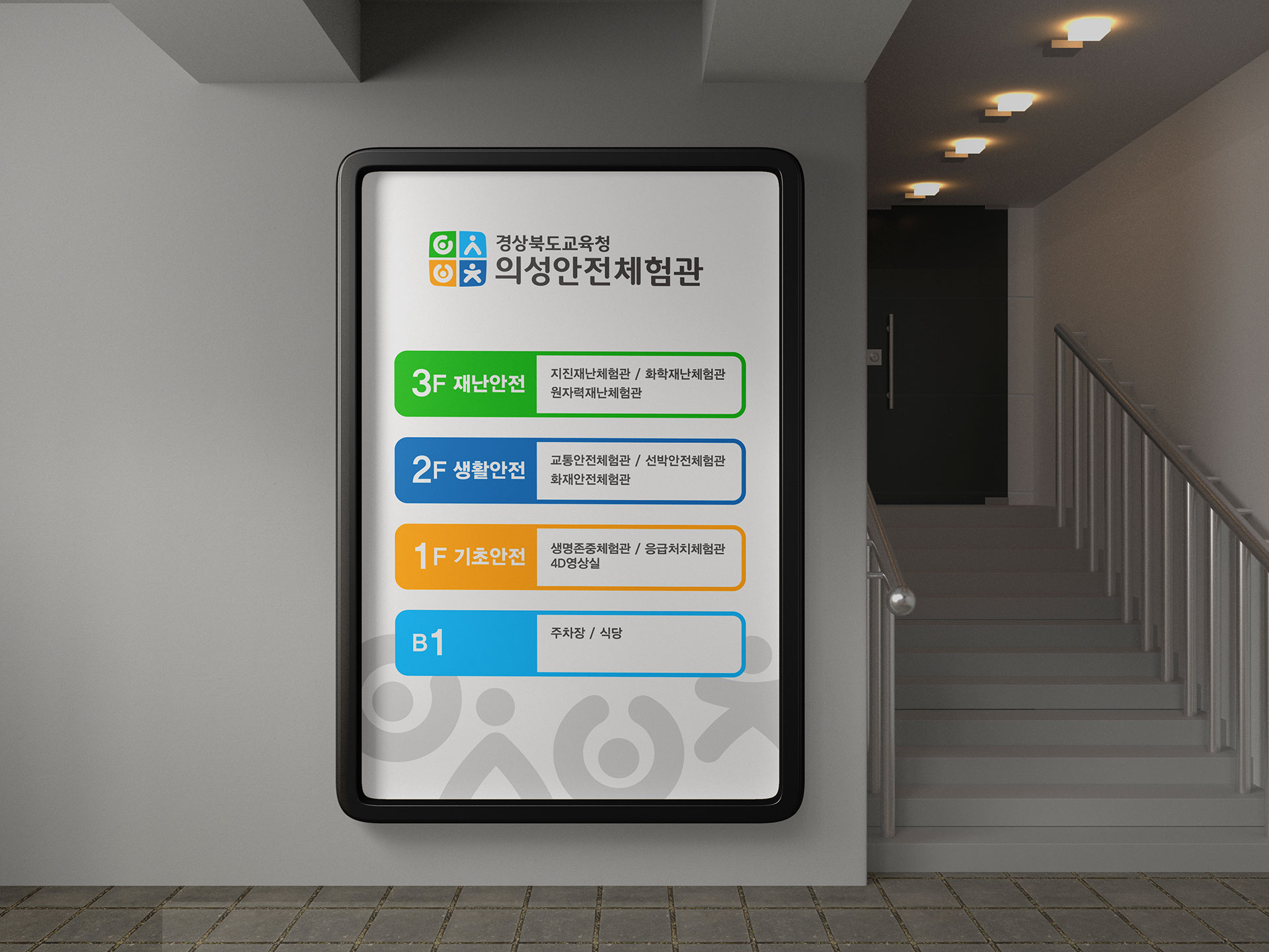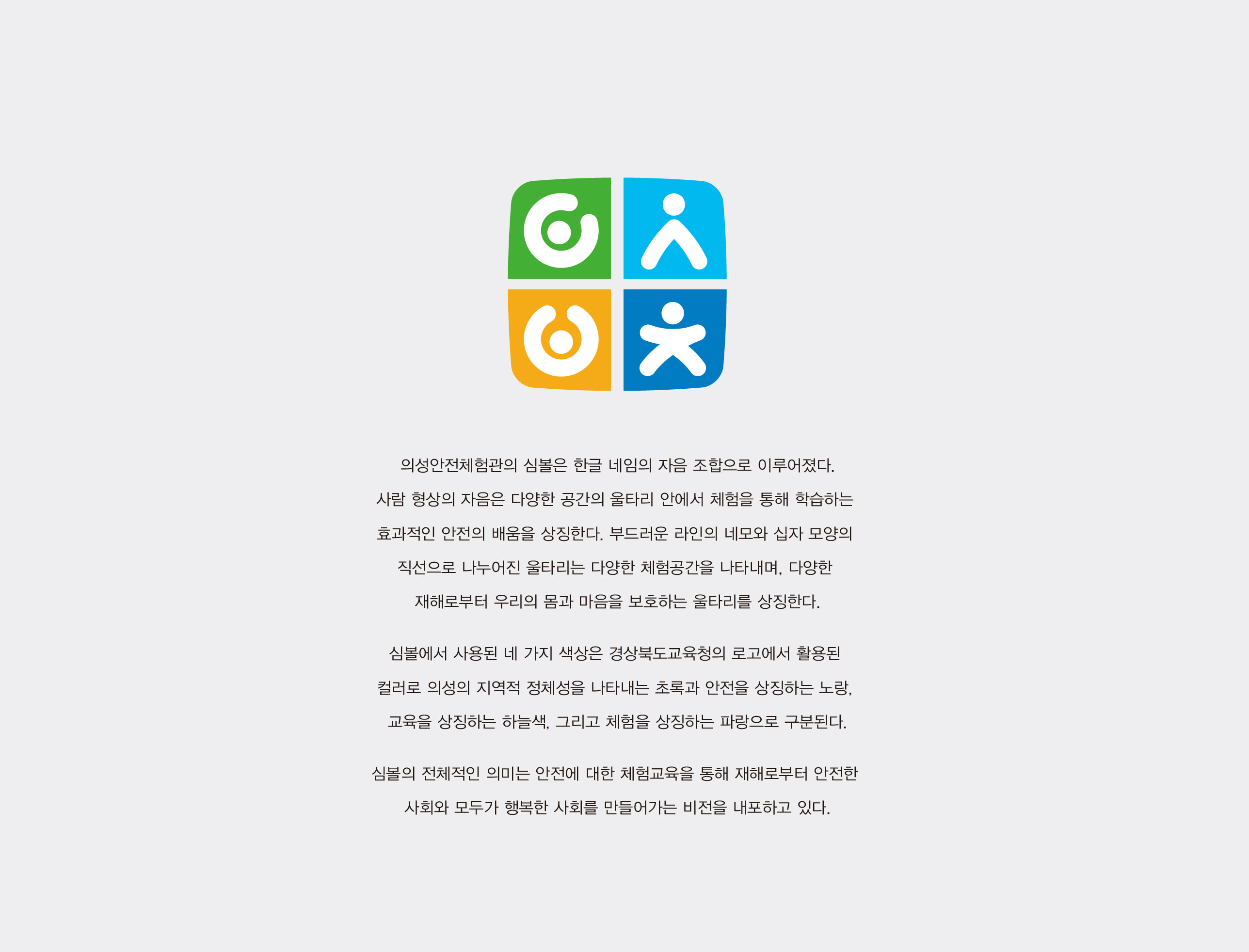 의성안전체험관 보고 배우고 실천하는 종합 안전체험관 경상북도교육청 의성안전체험관은 각종 재난과 안전사고의 유형이 다양화되고, 일상 속 안전 대응 역량의 중요성이 사회 전반에서 크게 강조되는 시대적 흐름에 대응하여 건립되었다. 특히 기후변화로 인한 자연재해 증가, 생활 안전사고의 복합화, 그리고 체험 중심 안전교육에 대한 교육 현장의 요구가 높아지면서, 단순 이론 교육을 넘어 실제 상황에 대비할 수 있는 체험형 안전교육 인프라의 필요성이 더욱 부각되고 있다. 최근 전국적으로 안전체험관 구축이 확대되며 학생과 시민을 대상으로 한 실습 중심 안전교육이 중요한 공공 교육 모델로 자리잡고 있다. 이러한 흐름 속에서 의성안전체험관은 경상북도 지역의 안전교육 거점으로서, 체계적이고 전문적인 프로그램 운영을 통해 지역 간 안전교육 격차를 해소하고 미래 세대의 안전 역량을 선도적으로 강화하고자 하였다. 의성안전체험관은 학교 안전교육 7대 표준안을 기반으로 총 5개관 18개 교실을 구성하여 교통안전, 재난안전, 응급처치, 생활안전, 생명존중 등 다양한 영역을 통합적으로 체험할 수 있도록 설계되었다. 이를 통해 학습자가 위험 요소를 사전에 인지하고 위기 상황에서 스스로 판단·대응할 수 있는 실천 중심 교육 환경을 구축하는 데 중점을 두었다. 궁극적으로 의성안전체험관은 체험 중심 안전교육을 통해 생명 존중 의식과 시민 안전 역량을 높이고, 변화하는 재난 환경에 능동적으로 대응할 수 있는 미래형 안전교육 거점 기관으로 자리매김하는 것을 목표로 브랜드 개발이 진행되었다. | ||||