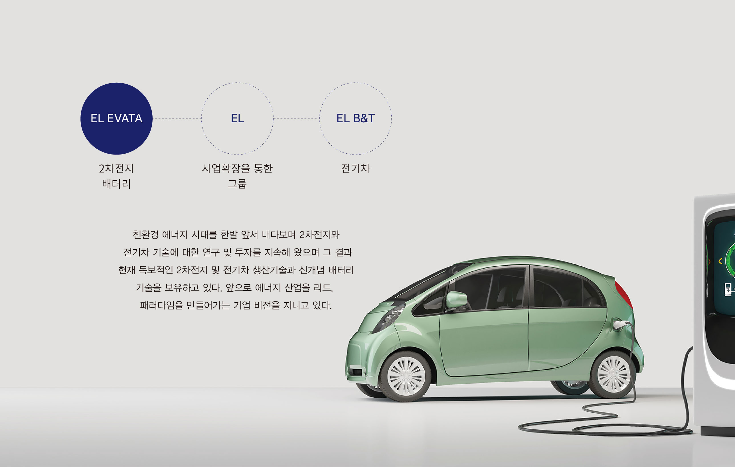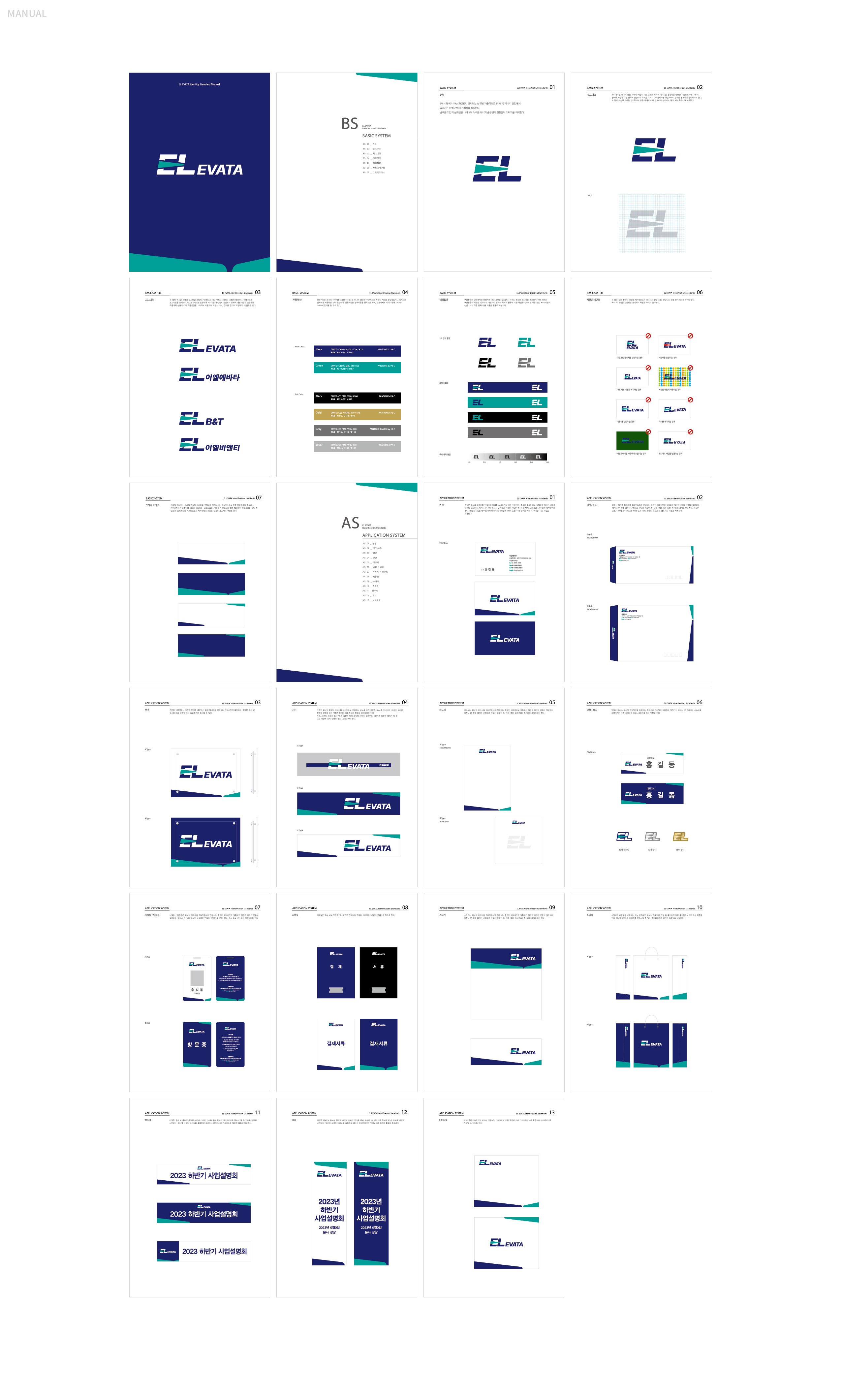 EL그룹 CI 지속 가능한 친환경에너지 패러다임 EL 그룹 브랜드 개발은 2차전지와 전기차 산업을 기반으로 에너지 패러다임을 선도하는 기업으로서의 정체성을 재정립하기 위한 전략적 작업이었다. 본 프로젝트는 기술 중심 제조 기업을 넘어, 미래 에너지 산업을 이끄는 그룹 브랜드로서의 위상을 명확히 구축하는 데 목적이 있었다. EL 그룹은 EL EVATA의 2차전지·배터리 사업을 기반으로 전기차 분야까지 사업을 확장하며, 연구개발과 투자에 지속적으로 집중해 왔다. 이에 따라 브랜드는 단일 사업 영역을 설명하는 수준을 넘어, 그룹 차원의 통합적 비전과 기술 경쟁력을 전달할 필요가 있었다. 브랜드 개발의 핵심 방향은 ‘전기’, ‘에너지’, ‘미래지향’이라는 가치에 기반하였다. 2차전지에서 전기차로 이어지는 기술 확장 구조를 하나의 성장 서사로 정리하고, 이를 통해 에너지 산업의 새로운 기준을 제시하는 기업 이미지를 구축하는 것이 핵심 과제였다. 또한 그룹 체계 안에서 각 사업 영역이 유기적으로 연결되어 있음을 드러내며, 연구개발 중심 기업으로서의 전문성과 지속적인 혁신 역량을 강조하였다. 이는 단순 생산 기업이 아닌, 기술 기반 에너지 플랫폼 기업으로 도약하려는 전략적 방향성을 반영하고자 하였다. 결과적으로 EL 그룹 브랜드 개발은 친환경 에너지 시대를 선도하는 기술 기업의 비전과 확장성을 집약한 브랜드아이덴티티 구축을 목표로 하였다. | ||||
