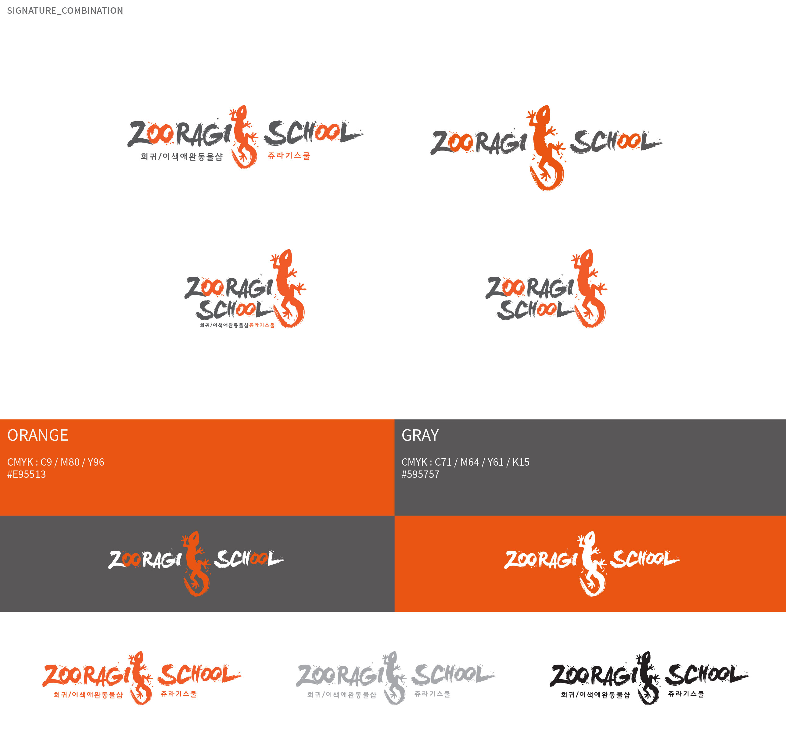 쥬라기스쿨 CI 휘귀/이색 애완동물 샵 쥬라기스쿨의 브랜딩은 희귀·이색 애완동물 전문샵의 정체성을 명확히 구축하기 위한 작업이었다. 단순한 펫샵이 아닌, 차별화된 희귀 동물 전문샵 브랜드로서의 이미지를 정립하는 데 목적이 있었다. 주라기스쿨은 파충류, 곤충, 소동물 등 이색 애완동물을 중심으로 온라인과 오프라인 판매를 병행하며 성장해 왔다. 그러나 네임에서 연상되는 ‘공룡’의 이미지가 실제 취급 품목과 직접적으로 연결되지 않는 한계가 있었고, 브랜드가 지향하는 전문성과 독창성을 직관적으로 전달할 필요가 있었다. 이에 따라 브랜드 개발은 희귀성과 전문성을 강조하는 방향으로 설정되었다. 대중적인 펫샵과 구분되는 차별화된 카테고리 정체성을 강화하고, 매장 외부 사인과 내부 적용 요소 전반에 일관된 이미지를 구축하는 것이 핵심 과제였다. 또한 오프라인 매장의 상징성과 온라인 판매 채널의 확장성을 동시에 고려하여, 기억에 남는 브랜드 인상을 형성하는 데 초점을 두었다. 이는 단순 판매 공간이 아닌, 희귀 동물에 대한 정보와 경험을 제공하는 전문 플랫폼으로 자리매김하기 위한 전략이었다. 쥬라기스쿨 브랜드 개발은 희귀 애완동물 시장에서의 전문성과 독창성을 명확히 드러내는 차별화를 목표로 하였다. | ||||