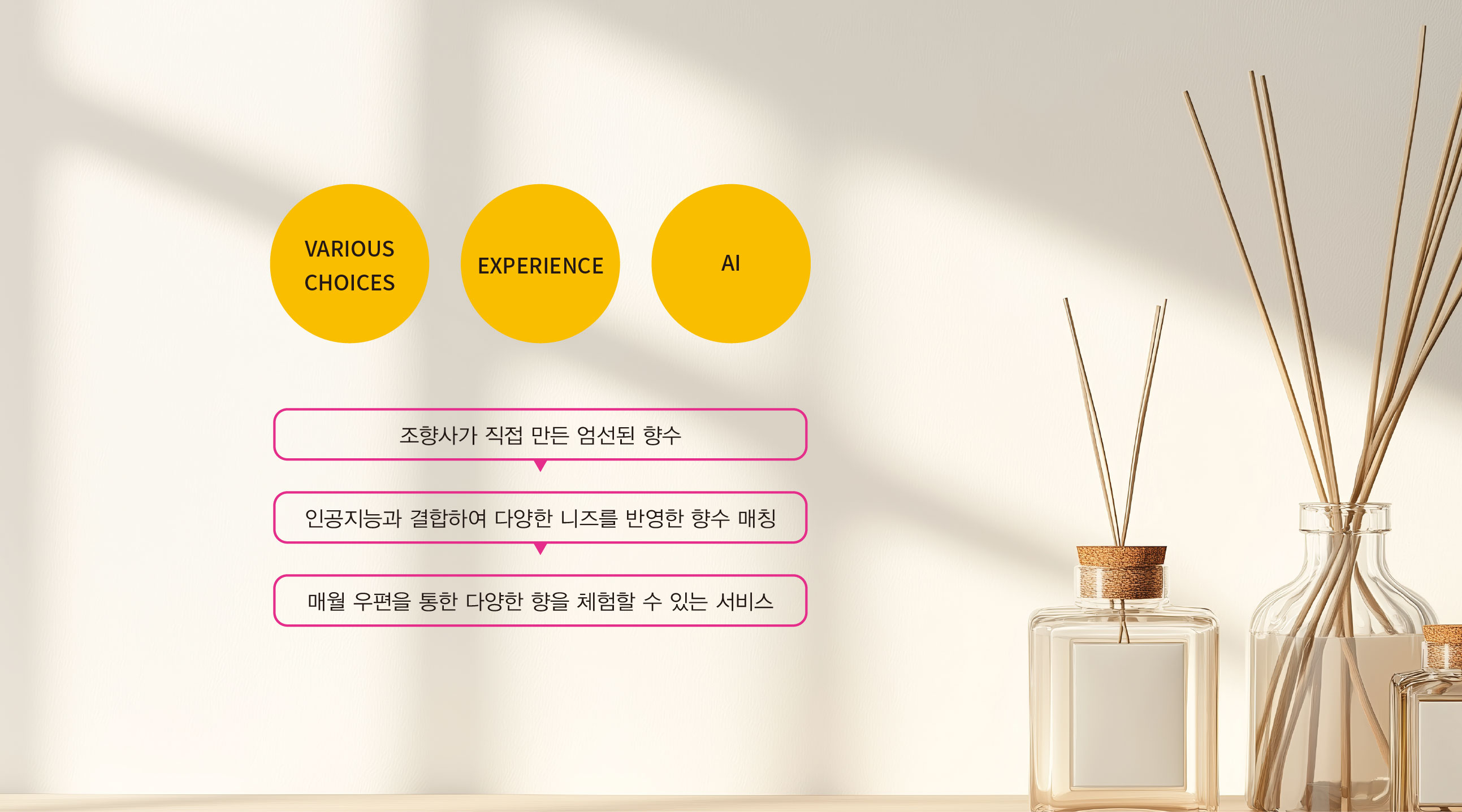 피커스트 매달 새로운 향을 경험하는 서비스 피커스트는 조향사가 직접 기획·제작한 향을 기반으로, 고객의 취향과 라이프스타일에 맞춘 향수를 정기적으로 제안하는 신개념 구독 서비스다. 기존 향수 시장이 대형 브랜드 중심의 일방향적 선택 구조였다면, 피커스트는 소비자의 취향 데이터를 기반으로 개인 맞춤형 향을 큐레이션하는 새로운 소비 방식을 제시하고자 하였다. 브랜드는 ‘다양한 선택’, ‘체험’, ‘인공지능’이라는 세 가지 핵심 가치를 중심으로 설계되었다. 조향사가 직접 만든 옵션형 향수를 제공하고, 인공지능 분석을 통해 고객의 니즈를 반영하며, 매월 우편을 통해 새로운 향을 경험하게 하는 구조는 단순 판매를 넘어 ‘향 경험 플랫폼’으로의 확장을 의미한다. 특히 향수는 직접 시향하지 않으면 구매가 어려운 제품이라는 한계를 가지고 있다. 이에 따라 피커스트는 구독 모델을 통해 부담 없는 체험 환경을 제공하고, 개인의 취향을 점진적으로 학습해 나가는 시스템을 구축하였다. 브랜드는 향을 판매하는 것이 아니라, 고객의 취향을 발견하고 완성해가는 여정을 제공하는 데 초점을 두었다. 이와 함께 프리미엄 이미지와 감각적 경험, 기술 기반 맞춤 서비스가 조화를 이루는 시각적 아이덴티티가 요구되었으며, 감성 산업과 데이터 기술이 결합된 브랜드 정체성을 명확히 하는 방향으로 정립되었다. | ||||
