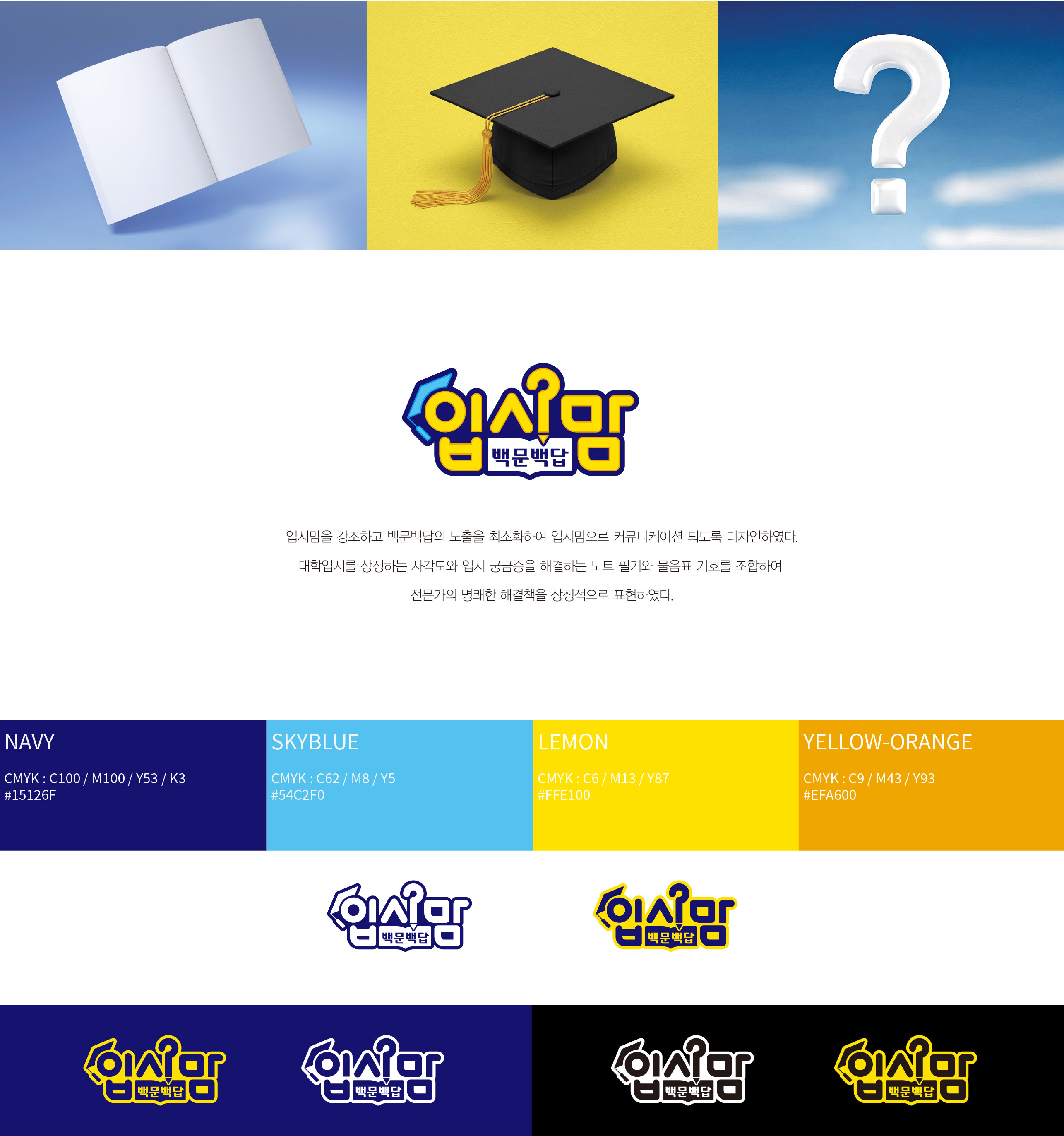 입시맘 백문백답 BI BI 학부모의 궁금증을 직접 해소하는 소통형 입시 프로그램 태광그룹 계열 케이블TV 방송사 티브로드는 대학정보 전문 PP인 브릿지TV와 공동 기획을 통해 입시맘 「백문백답」 프로그램을 새롭게 론칭하고자 하였다. 빠르게 변화하는 입시 제도와 복잡해진 전형 구조 속에서 학부모와 수험생이 신뢰할 수 있는 전문 콘텐츠의 필요성이 더욱 커지고 있었다. 수행생, 학부모, 입시 전문 상담가 8인이 한자리에 모여 실제 사례와 전략을 공유하는 차별화된 입시 정보 프로그램으로 기획되었으며, 대학 수시모집, 정시모집, 학생부 전형, 논술전형 요강 등 핵심 정보를 심층적으로 다루는 구성으로 설계되었다. 특히 단순 정보 전달을 넘어, 학부모의 궁금증을 직접 해소하고 공감과 신뢰를 형성하는 소통형 입시 프로그램이라는 점에서 기존 콘텐츠와의 차별화를 목표로 하였다. 이에 따라 프로그램의 전문성과 신뢰도, 그리고 ‘백문백답’이라는 명확한 콘셉트를 효과적으로 전달할 수 있는 통합된 시각 아이덴티티 구축이 필요하였다. 입시 정보의 정확성과 신뢰성을 상징하면서도, 학부모와 학생 모두에게 친근하게 다가갈 수 있는 브랜드 이미지 구축을 목표로 브랜드 개발이 진행되었다. | ||||