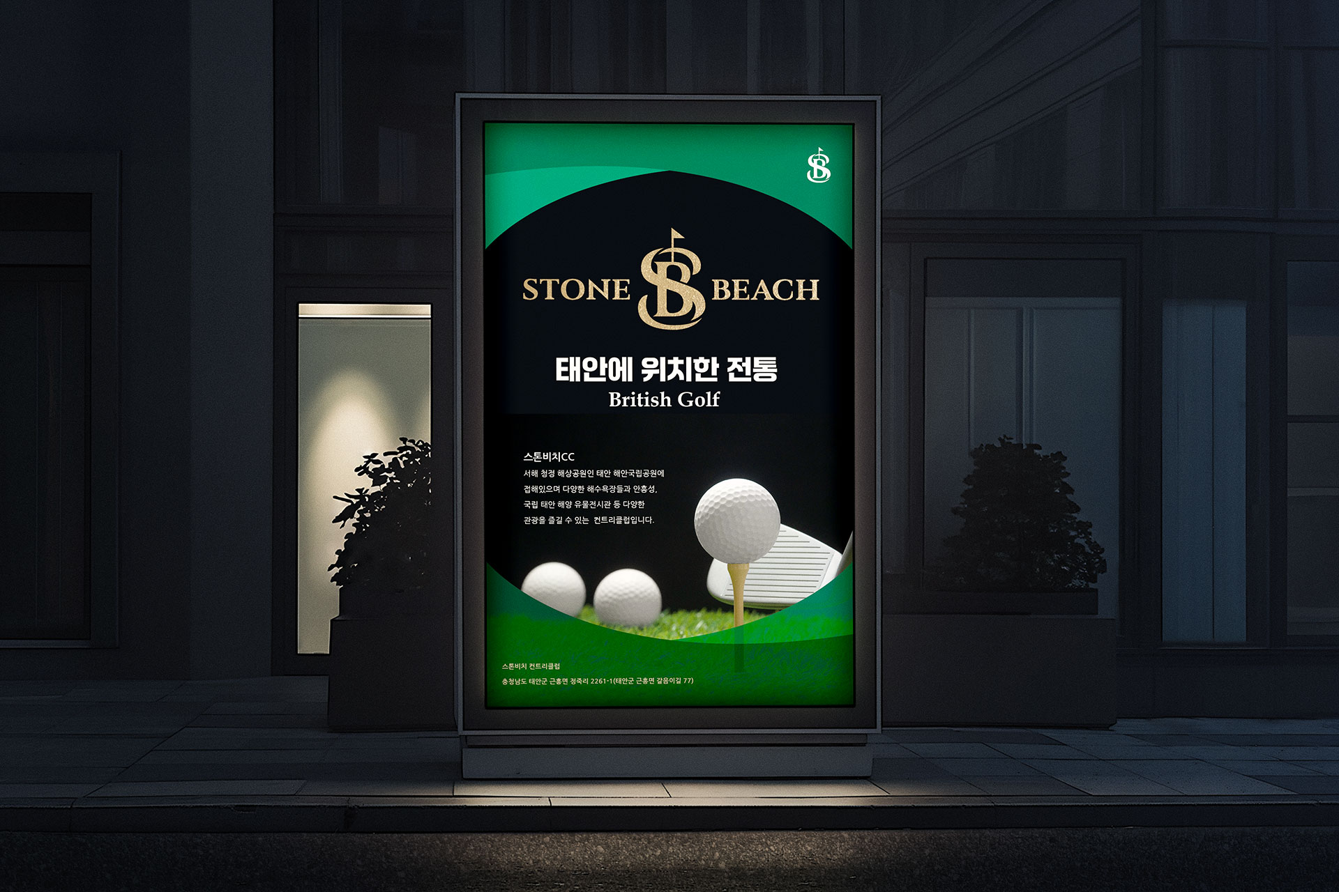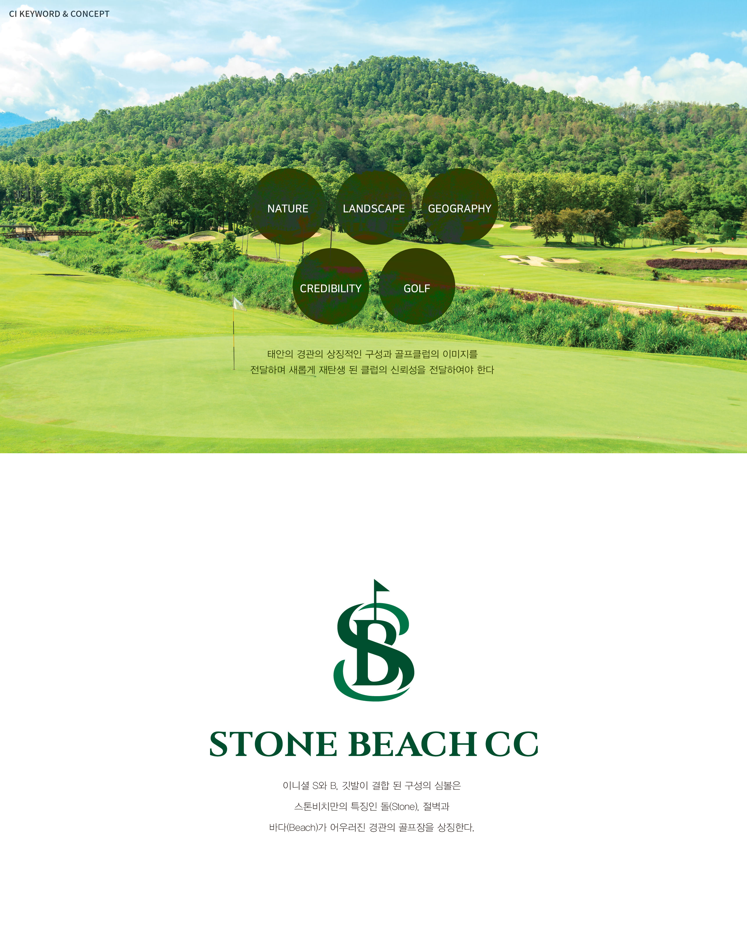 스톤비치 BI 태안비치컨트리클럽 브랜드 재활성화 스톤비치CC는 서해의 청정 해상공원인 태안 해안국립공원에 접한 골프 컨트리클럽으로, 안면송 숲과 바다 경관이 어우러진 자연 친화적 입지를 갖추고 있다. 다양한 해수욕장과 안성항, 국립 태안 해양 유물전시관 등 주변 관광 인프라와의 연계성이 뛰어나 단순한 골프장을 넘어 체류형 관광 목적지로서의 가능성을 지니고 있다. 그러나 기존 ‘태안비치컨트리클럽’이라는 명칭은 지역 중심의 인식에 머물러 있었으며, 고급 리조트형 골프장으로서의 브랜드 확장성과 차별화된 이미지를 충분히 전달하지 못하는 한계가 있었다. 이에 따라 보다 세련되고 기억하기 쉬운 네이밍을 통해 브랜드 경쟁력을 강화하고자 하였으며, 새로운 브랜드 아이덴티티 구축의 필요성이 제기되었다. 기존 명칭에서 탈피한 ‘스톤비치CC’로의 네임 변경은 단순한 이름 교체가 아닌, 브랜드 포지셔닝을 재정립하는 전략적 리뉴얼의 출발점이다. 자연과 어우러진 코스의 견고함(Stone)과 서해의 청량한 해안 이미지(Beach)를 결합하여 프리미엄 해안형 골프 클럽의 정체성을 명확히 하고자 하였다. 또한 신규 C.I 개발을 통해 고급스러움과 자연 친화적 이미지를 동시에 강화하고, 리조트형 골프 클럽으로서의 차별화된 브랜드 가치를 시각적으로 구현하는 것을 목표로 브랜드 리뉴얼이 진행되었다. 이는 지역을 대표하는 명문 골프 클럽으로 도약하기 위한 기반을 마련하는 과정이라 할 수 있다. | ||||