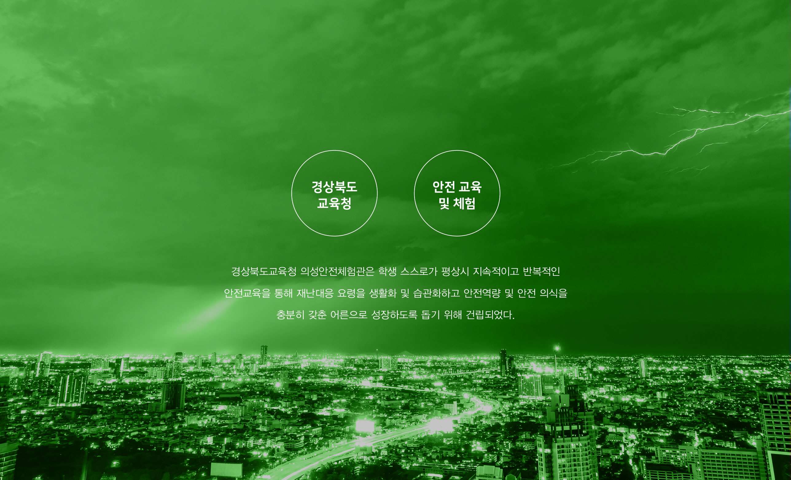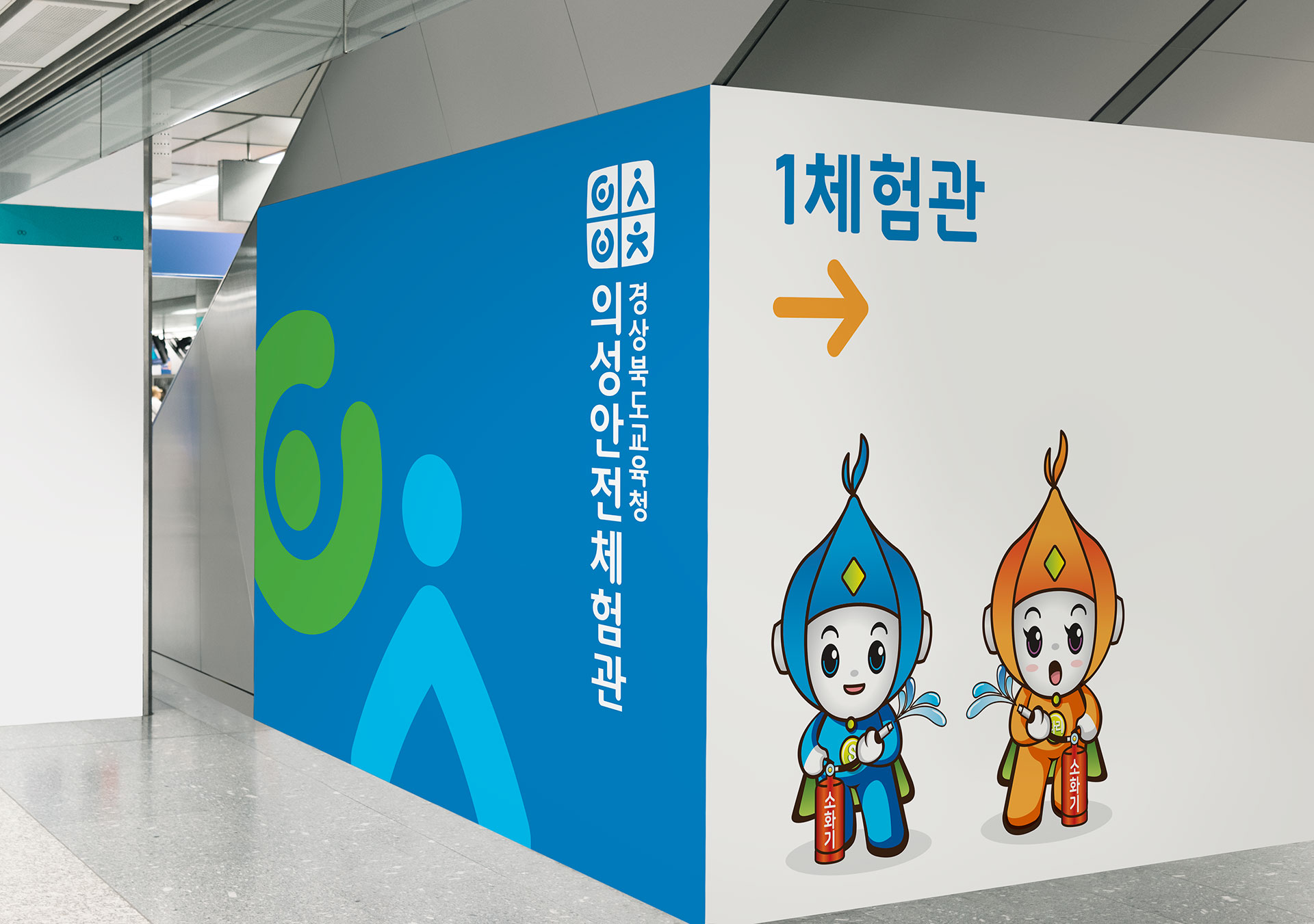 의성안전체험관 보고 배우고 실천하는 종합 안전체험관 경상북도교육청 의성안전체험관은 각종 재난과 안전사고의 유형이 다양화되고, 일상 속 안전 대응 역량의 중요성이 사회 전반에서 크게 강조되는 시대적 흐름에 대응하여 건립되었다. 특히 기후변화로 인한 자연재해 증가, 생활 안전사고의 복합화, 그리고 체험 중심 안전교육에 대한 교육 현장의 요구가 높아지면서, 단순 이론 교육을 넘어 실제 상황에 대비할 수 있는 체험형 안전교육 인프라의 필요성이 더욱 부각되고 있다. 최근 전국적으로 안전체험관 구축이 확대되며 학생과 시민을 대상으로 한 실습 중심 안전교육이 중요한 공공 교육 모델로 자리잡고 있다. 이러한 흐름 속에서 의성안전체험관은 경상북도 지역의 안전교육 거점으로서, 체계적이고 전문적인 프로그램 운영을 통해 지역 간 안전교육 격차를 해소하고 미래 세대의 안전 역량을 선도적으로 강화하고자 하였다. 의성안전체험관은 학교 안전교육 7대 표준안을 기반으로 총 5개관 18개 교실을 구성하여 교통안전, 재난안전, 응급처치, 생활안전, 생명존중 등 다양한 영역을 통합적으로 체험할 수 있도록 설계되었다. 이를 통해 학습자가 위험 요소를 사전에 인지하고 위기 상황에서 스스로 판단·대응할 수 있는 실천 중심 교육 환경을 구축하는 데 중점을 두었다. 궁극적으로 의성안전체험관은 체험 중심 안전교육을 통해 생명 존중 의식과 시민 안전 역량을 높이고, 변화하는 재난 환경에 능동적으로 대응할 수 있는 미래형 안전교육 거점 기관으로 자리매김하는 것을 목표로 브랜드 개발이 진행되었다. | ||||