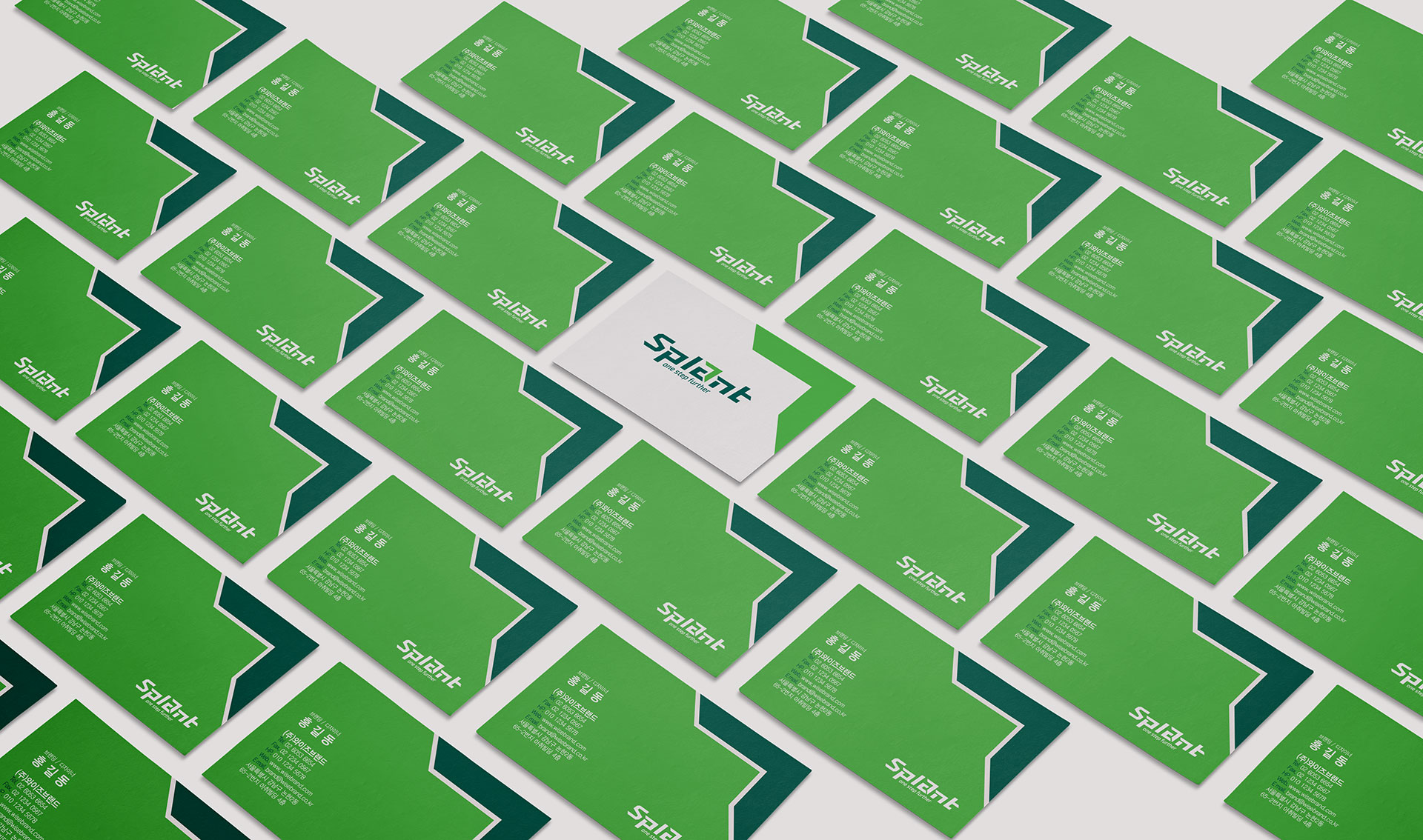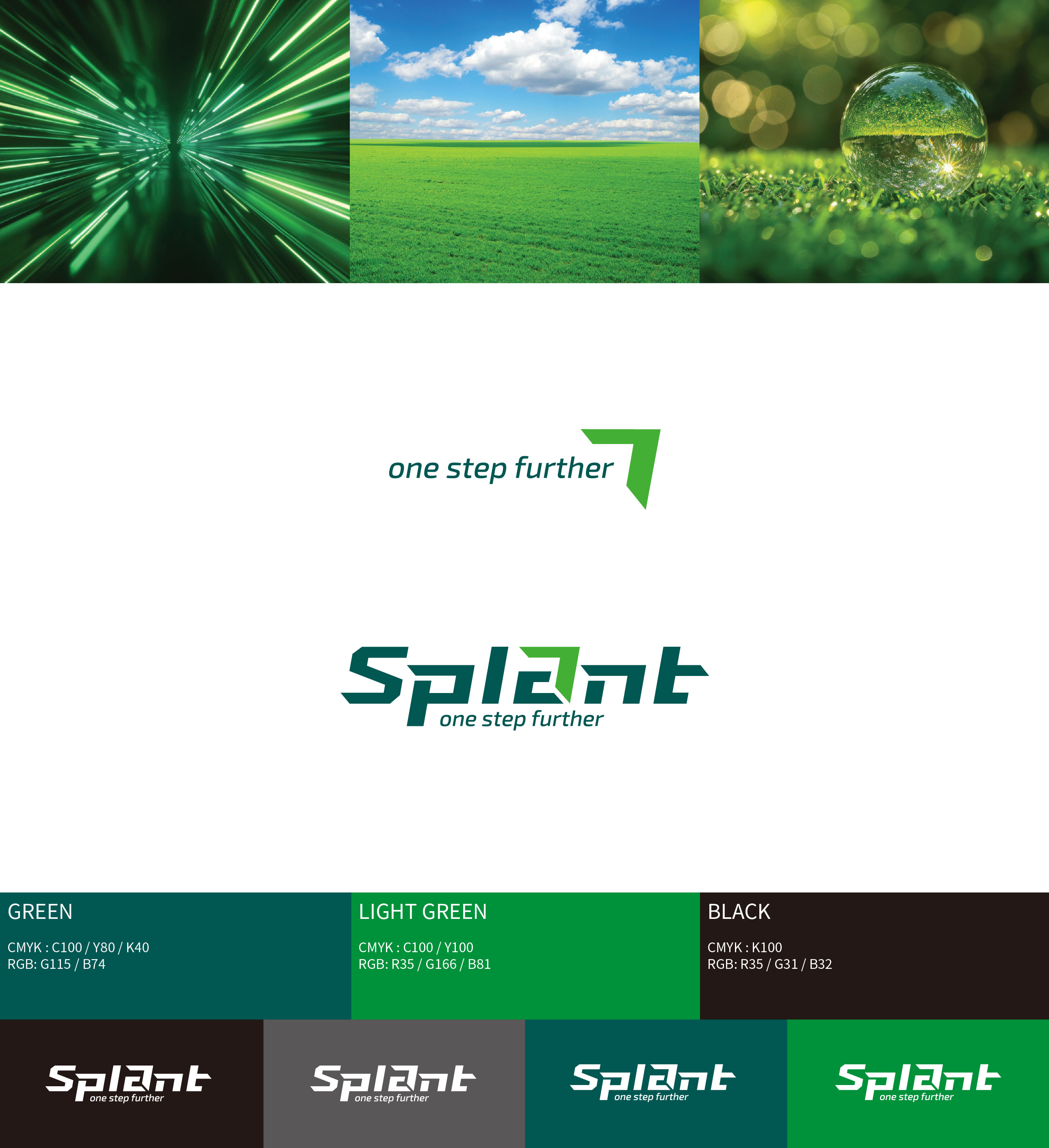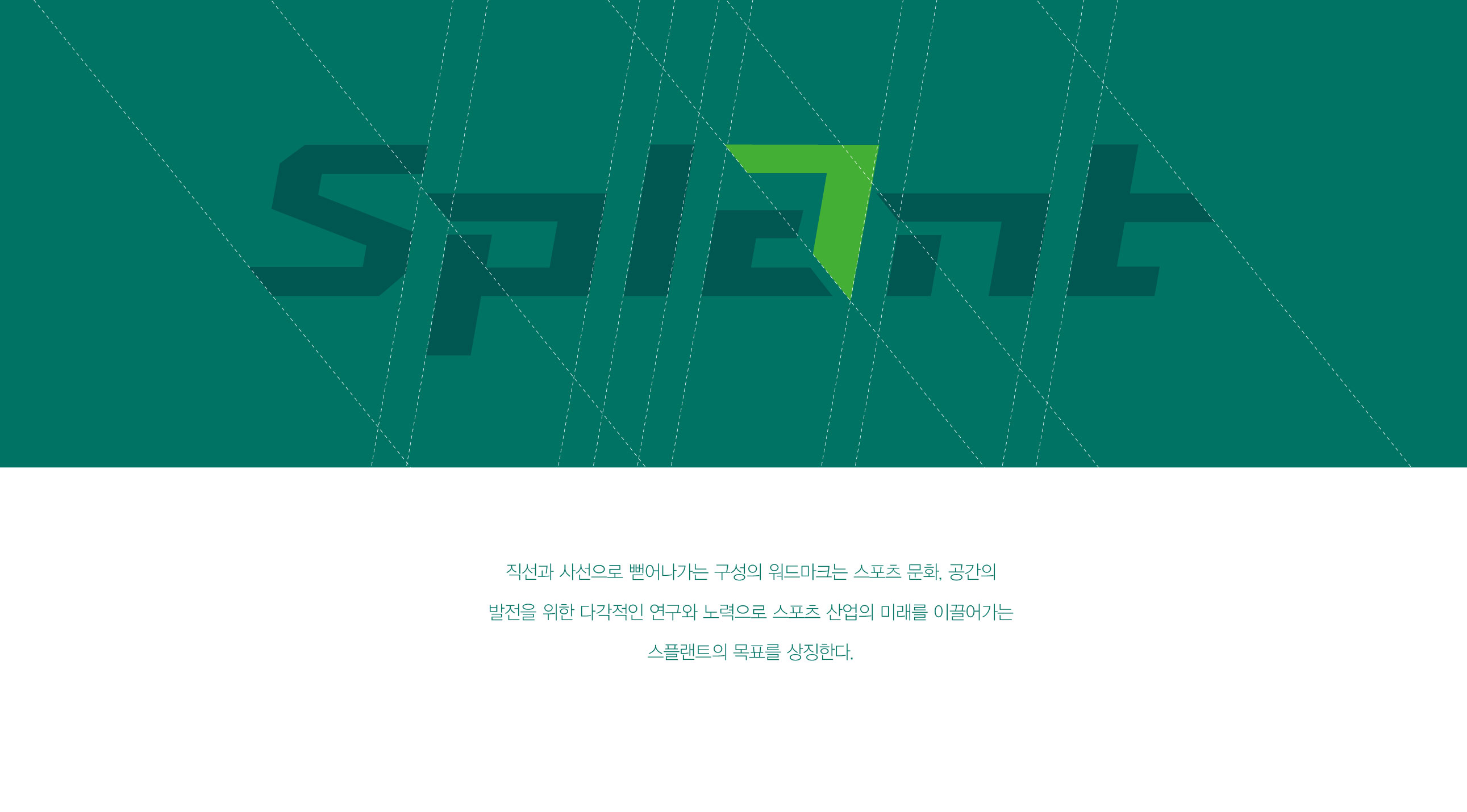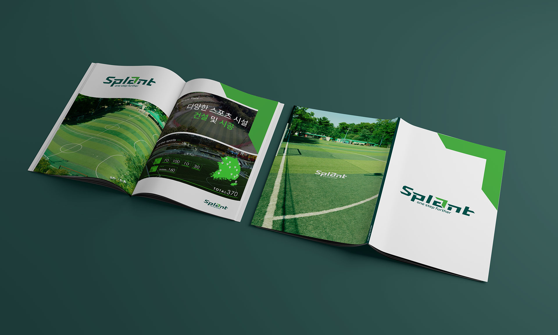 스플랜트 CI 친환경 스포츠 인프라의 새로운 기준 스플랜트는 국내 스포츠 기반 시설 산업의 확장 흐름 속에서, 기존 사업 영역을 재정비하고 미래 지향적 기업 이미지를 구축하기 위한 전략적 작업이었다. 국내 최초로 민간 풋살구장을 도입·운영하며 스포츠 시설 민간투자사업(BTO)을 통해 대규모 구장을 직접 건설·운영해 온 기업으로서, 단순 시설 운영 기업을 넘어 스포츠 문화를 선도하는 전문 브랜드로의 전환이 필요한 시점이었다. 스플랜트는 스포츠 기반 시설의 건설과 운영을 넘어, R&D, 제품 개발, 컨설팅, 스포츠 마케팅까지 사업 영역을 확장하며 산업 전반을 아우르는 구조로 성장하고 있었다. 이에 따라 브랜드는 기존 모기업의 일부 사업이 아닌, 독립적이고 혁신적인 전문 기업으로서의 정체성을 명확히 정립할 필요가 있었다. 기존 R&D 센터와 제품 부문을 분리해 자회사로 설립한 것은 친환경·혁신 중심 기업으로 도약하기 위한 전략적 결정이었다. 브랜드 방향성은 ‘한 걸음 더(ONE STEP FURTHER)’라는 메시지 아래, 스포츠 시설 산업의 기준을 한 단계 끌어올리는 기업이라는 이미지를 구축하는 데 초점을 두었다. 이는 단순한 시설 공급이 아니라, 스포츠 환경의 질적 향상과 참여 문화 확산에 기여하는 플랫폼 기업으로 자리매김하기 위한 선언적 의미를 담고 있다. 스플랜트는 스포츠 공간을 설계하는 기업을 넘어, 스포츠 산업의 미래를 설계하는 브랜드로 재정의되었다. | ||||