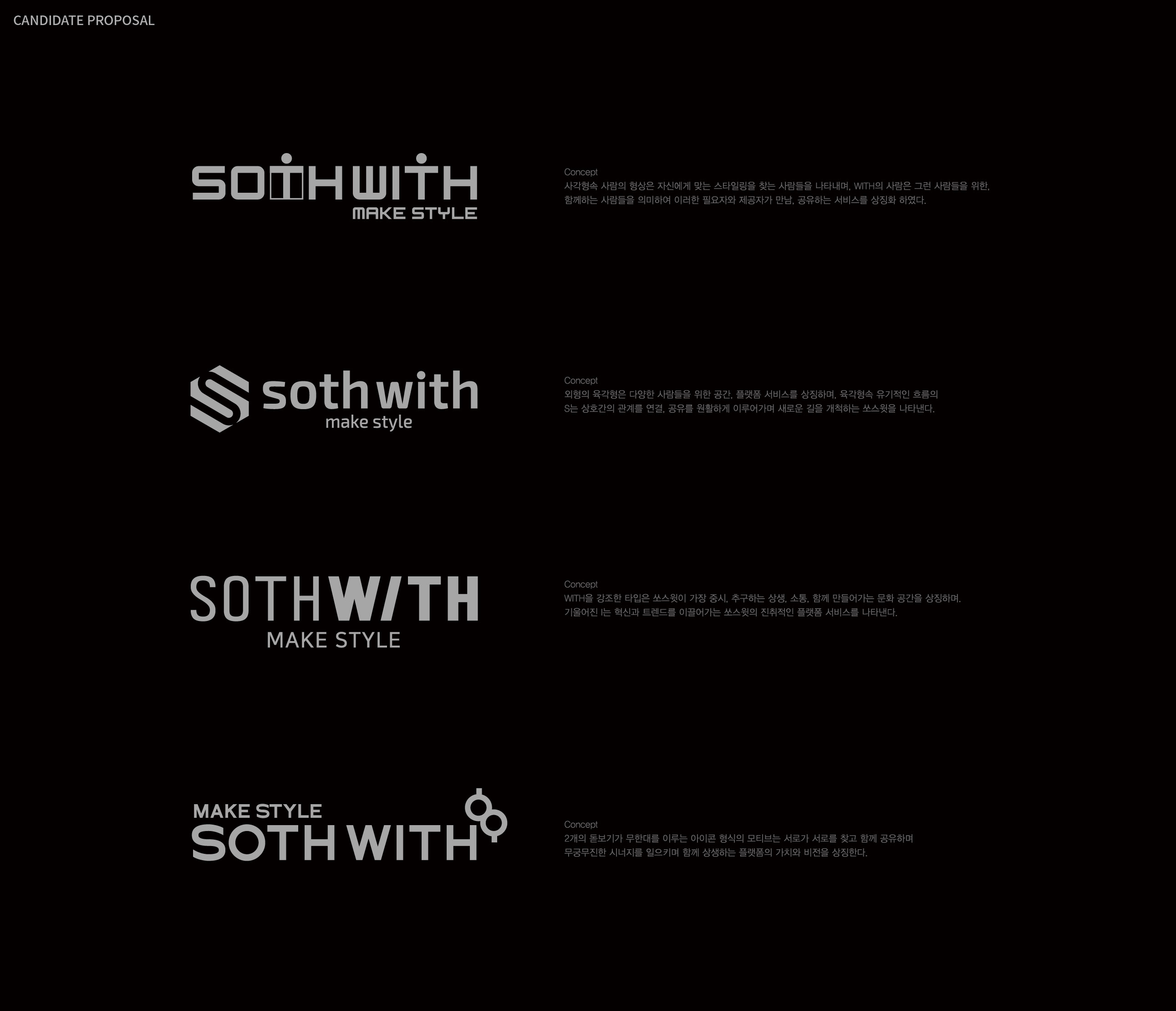 쏘스윗 CI 데이터 기반 개인 맞춤 패션 플랫폼 SOTHWITH는 기존 온라인 의류 구매 방식의 한계를 개선하고자 출발한 의류 스타일링 플랫폼이다. 고객이 직접 상품을 탐색하고 선택의 책임을 지는 구조에서 벗어나, 고객에게 먼저 스타일을 제안하는 새로운 쇼핑 패러다임을 제시하는 것이 핵심 방향이었다. 기존 온라인 쇼핑은 정보 과잉 속에서 소비자가 스스로 판단해야 하는 구조였으며, 패션에 대한 전문성이 부족하거나 직접 착용 경험이 어려운 고객에게는 높은 진입 장벽으로 작용했다. SOTHWITH는 이러한 문제를 해결하기 위해 고객의 성향과 신체적 특성을 기반으로 데이터를 축적하고, 패션 전문가와 스타일리스트가 직접 스타일을 제안하는 구조를 설계하였다. 이는 단순 의류 판매 플랫폼이 아니라, 스타일링을 중심으로 다양한 전문가와 고객이 연결되는 패션 코칭 시스템에 가까운 모델이었다. 브랜드는 ‘선택을 돕는 플랫폼’이 아닌 ‘스타일을 만들어주는 플랫폼’이라는 차별적 정체성을 구축할 필요가 있었다. 새로운 사업 확장과 함께 기업의 방향성을 명확히 전달할 시각적 아이덴티티가 요구되었으며, 전문성과 트렌디함, 신뢰성과 감각적 이미지를 동시에 담아내는 브랜드 체계가 필요해졌다. SOTHWITH는 개인 맞춤형 스타일 제안 서비스를 통해 온라인 패션 소비의 구조를 재정의하는 플랫폼으로 브랜드 정체성을 정립해 나가고 있다. | ||||